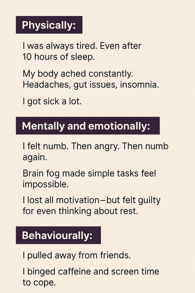 Burnout doesn’t knock. It doesn’t shout. It builds in stages: